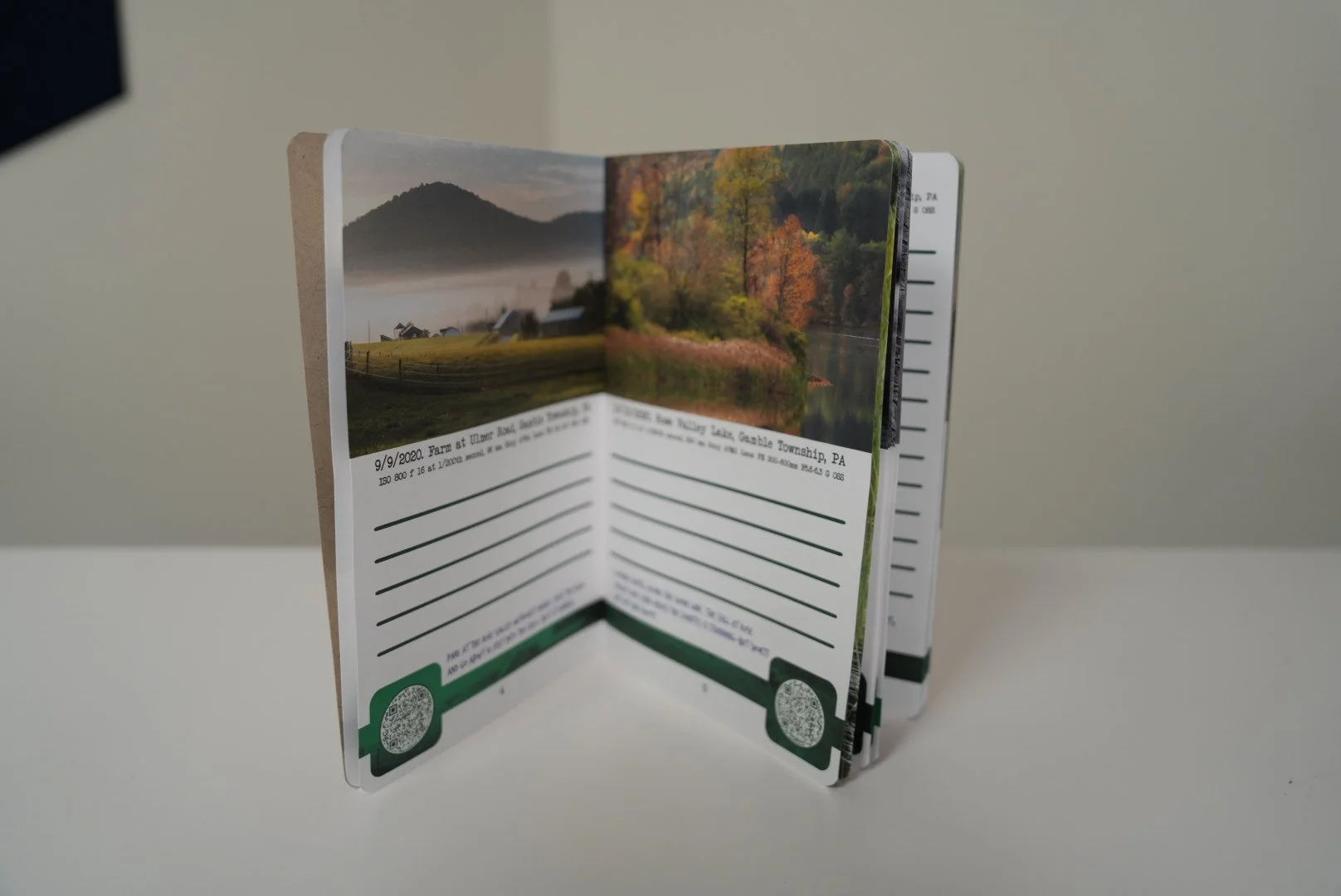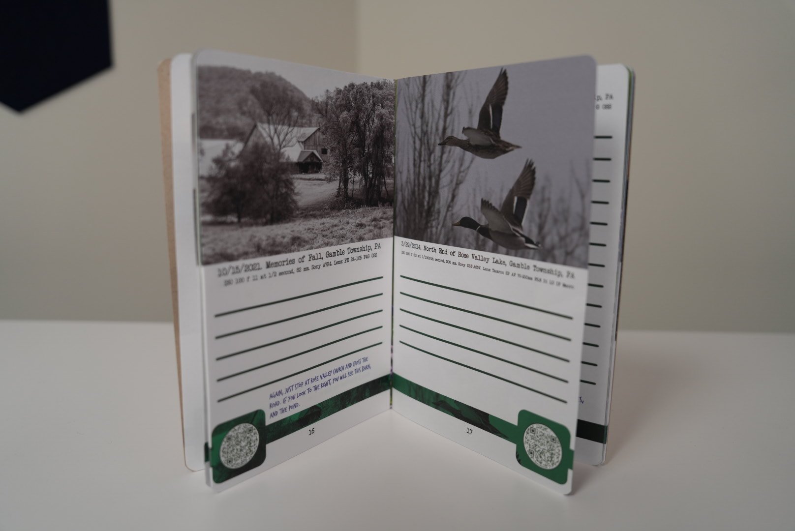 This zine is designed as a “field guide†to help you explore not only through photographs, but in person. By using the QR codes for each photo you can see where I stood when taking the photograph—and go there yourself. The information for settings are provided for you to learn about how to set up the photo, and the “blank space†is for you to write your notes while there.